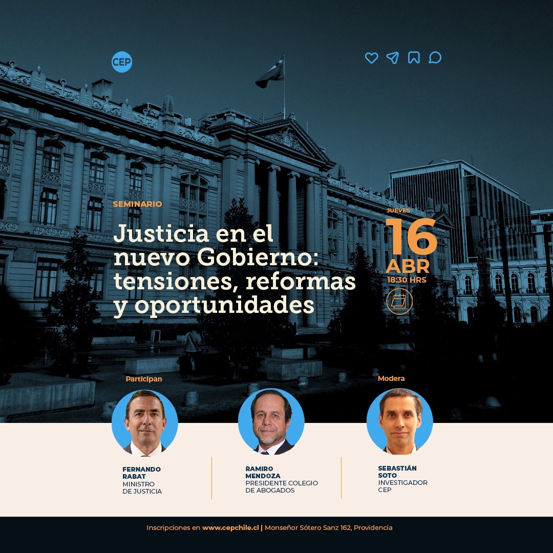 Invitación Seminario CEP: "Justicia en el nuevo Gobierno tensiones, reformas y oportunidades" - Jueves 16 de abril 18:30 horas