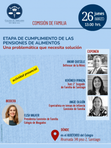 Invitación Seminario Comisión Familia, Colegio de Abogados de Chile, jueves 26 de marzo a las 13.00, sede Colegio Ahumada 341, Piso 2°